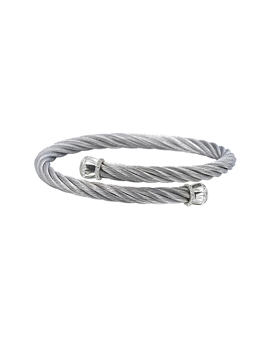 ALOR 14K White Gold Stainless Steel Diamond Coil Bangle Women Bracelets